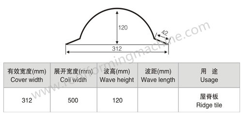 Our ridge cap roll forming machine can roll form metal ridge which is mostly used with colorful roofing tile sheets. The full roll forming line buildup by de-coiling (max bear 5 tons, and inner diameter is 500-- 508mm), main machine, hydraulic pressuring system, cutting equipment, control system.